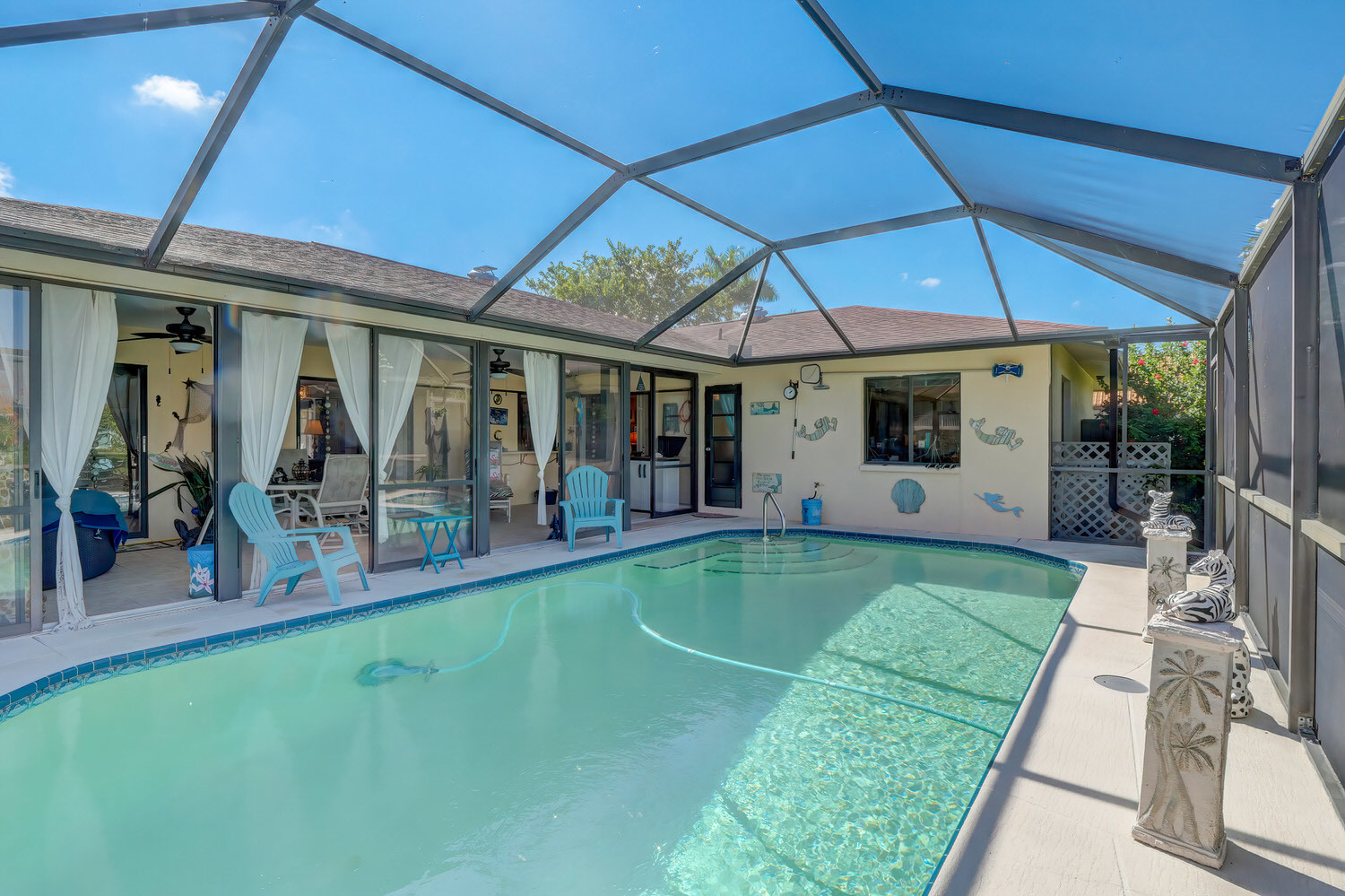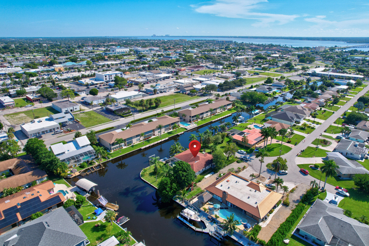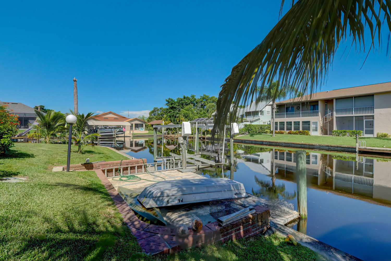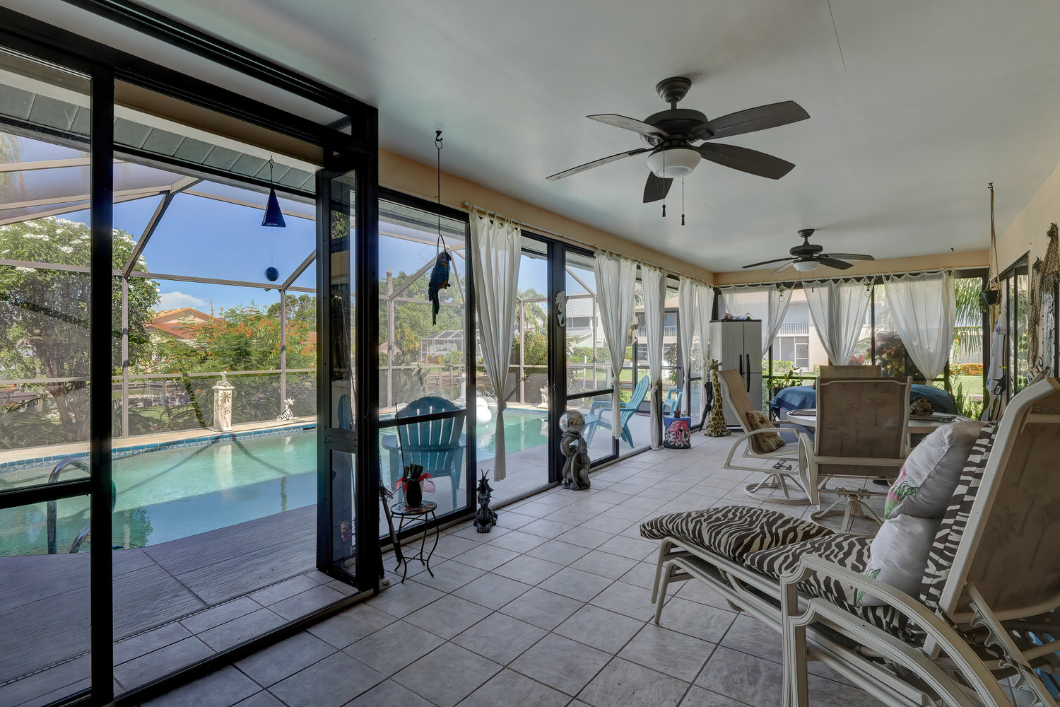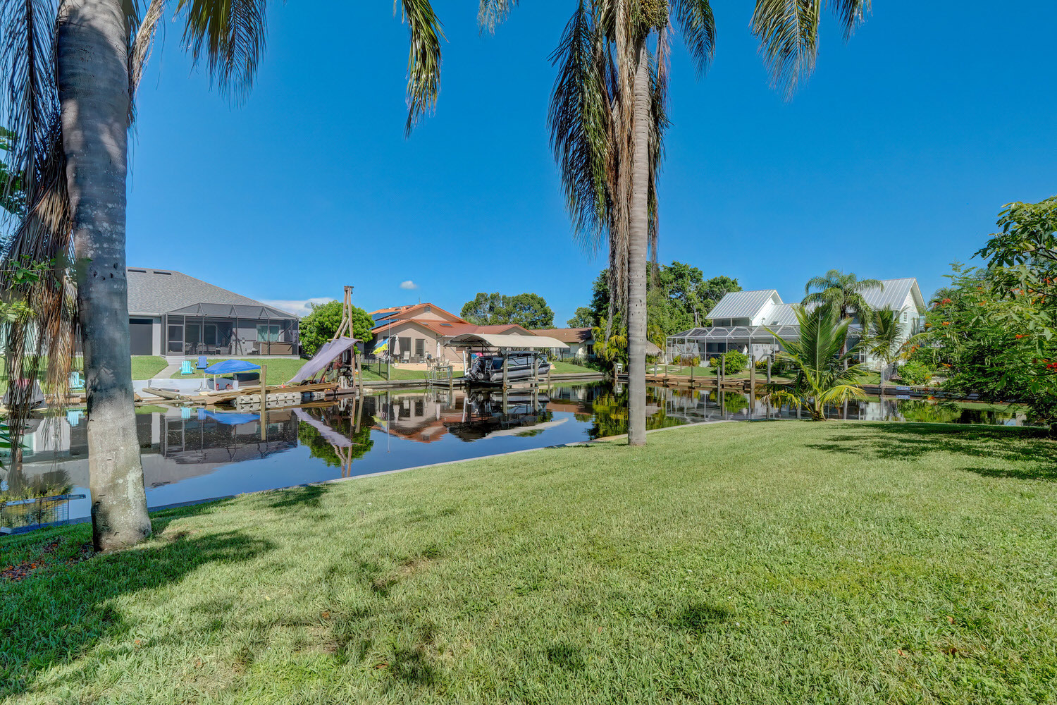 Brand new roof. Did NOT flood! A true boater’s paradise located on intersecting canals in the Yacht Club area of Cape Coral, this gulf access pool home is just minutes from the Caloosahatchee River and a short boat ride to the Gulf of Mexico. The premium waterfront lot with almost 276 feet of seawall, a concrete dock, and a 10,000lb boat lift provides ample room to navigate and play. Overlooking the expansive waterfront is a large pool surrounded by a caged lanai and a screened in porch, all west facing to accentuate your enjoyment of the SW Florida sunsets. The house itself is located on a quiet cul-de-sac on an oversized corner lot which provides extra privacy. The interior of the house is nicely appointed with high vaulted ceilings, plenty of natural light, access to the pool from the living area and main bedroom, plus a separate living and family room. The third bedroom overlooking the canal and pool area is currently being used as an office and is an ideal oasis for working from home. AC and hot water heater are two years old, toilets are ADA compliant, and the roof was replaced in 2012. Boating, fishing, watersports....you won't go wrong purchasing this perfectly situated home.