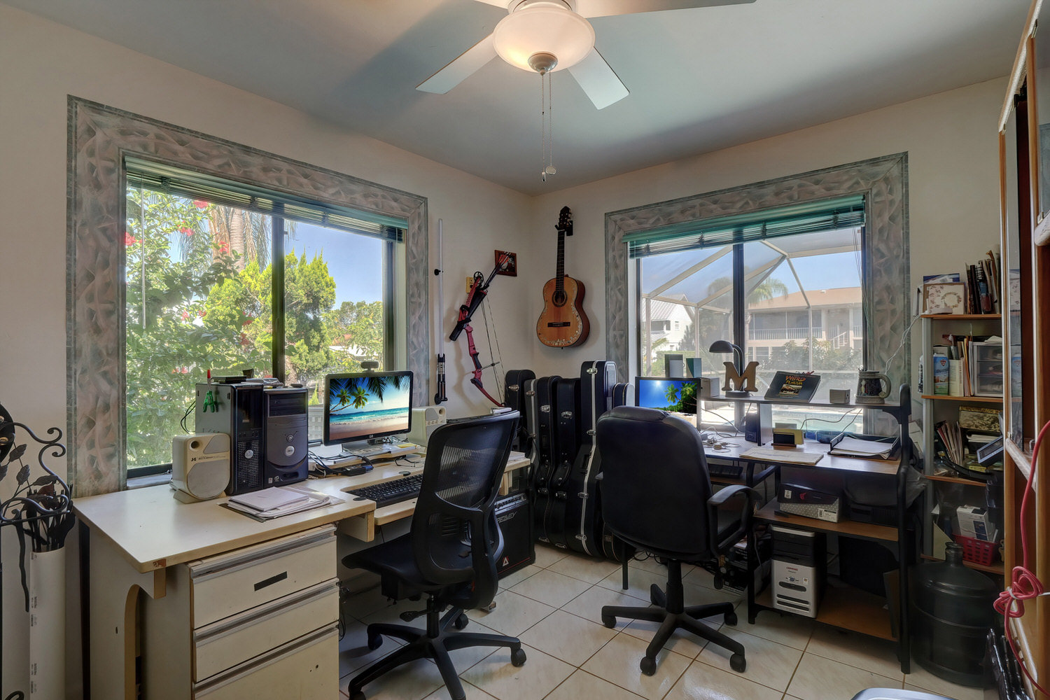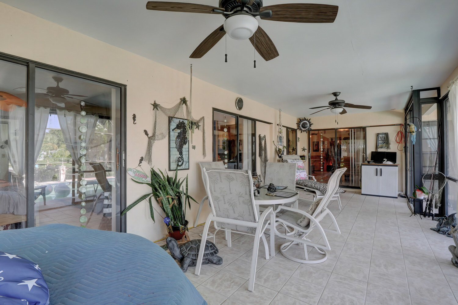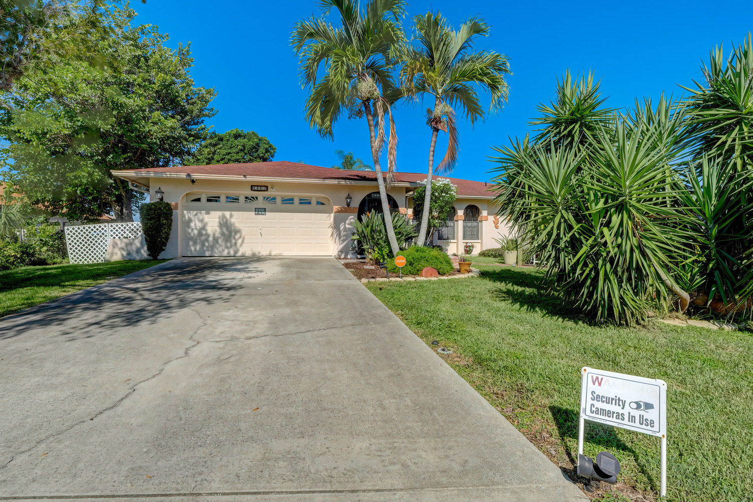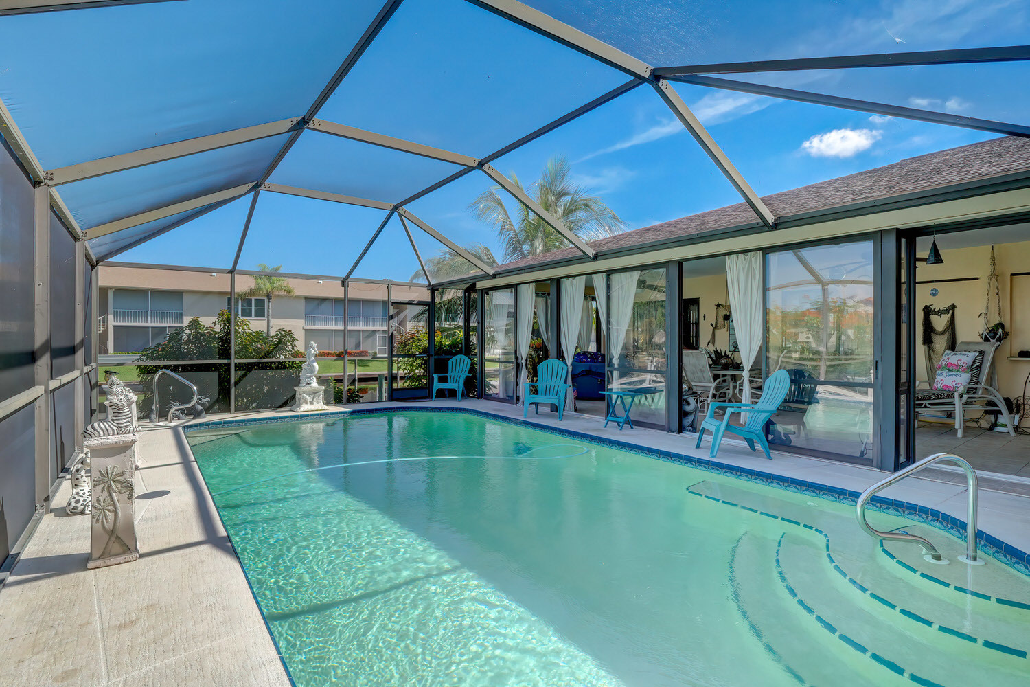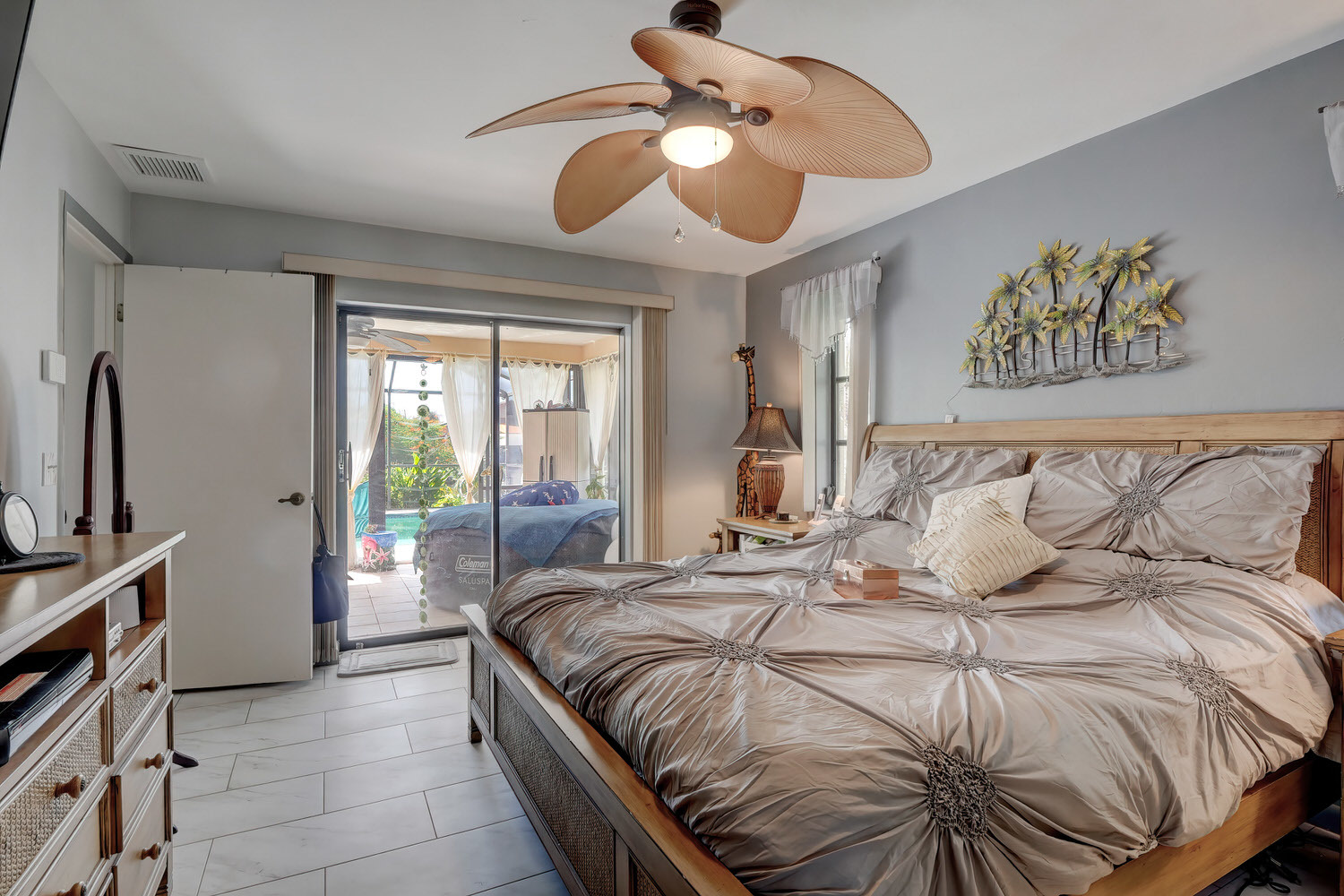 Brand new roof. Did NOT flood! A true boater’s paradise located on intersecting canals in the Yacht Club area of Cape Coral, this gulf access pool home is just minutes from the Caloosahatchee River and a short boat ride to the Gulf of Mexico. The premium waterfront lot with almost 276 feet of seawall, a concrete dock, and a 10,000lb boat lift provides ample room to navigate and play. Overlooking the expansive waterfront is a large pool surrounded by a caged lanai and a screened in porch, all west facing to accentuate your enjoyment of the SW Florida sunsets. The house itself is located on a quiet cul-de-sac on an oversized corner lot which provides extra privacy. The interior of the house is nicely appointed with high vaulted ceilings, plenty of natural light, access to the pool from the living area and main bedroom, plus a separate living and family room. The third bedroom overlooking the canal and pool area is currently being used as an office and is an ideal oasis for working from home. AC and hot water heater are two years old, toilets are ADA compliant, and the roof was replaced in 2012. Boating, fishing, watersports....you won't go wrong purchasing this perfectly situated home.